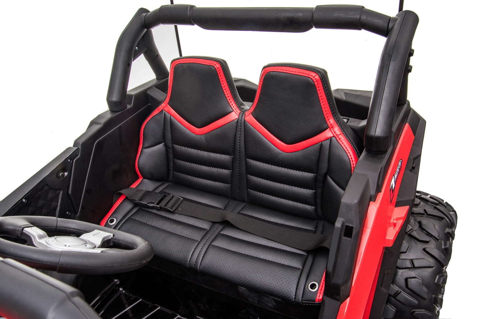 - Seatbelt to keep rider secure in the leather seating